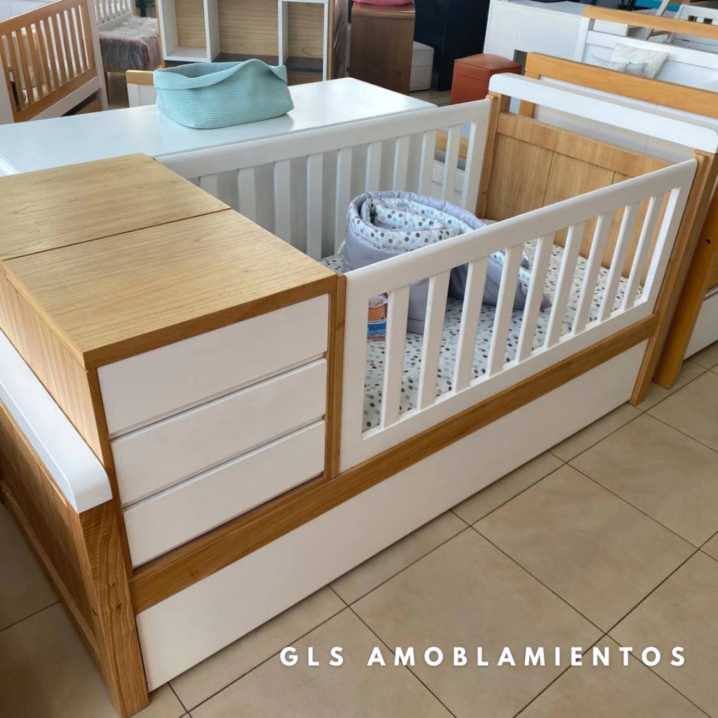 Cuna funcional de Paraíso para colchón Plaza (140x80x10) o Plaza y 1/2 (140x90x10) + Cama carro (No elevable) para colchón 190x80x18 (máximo).